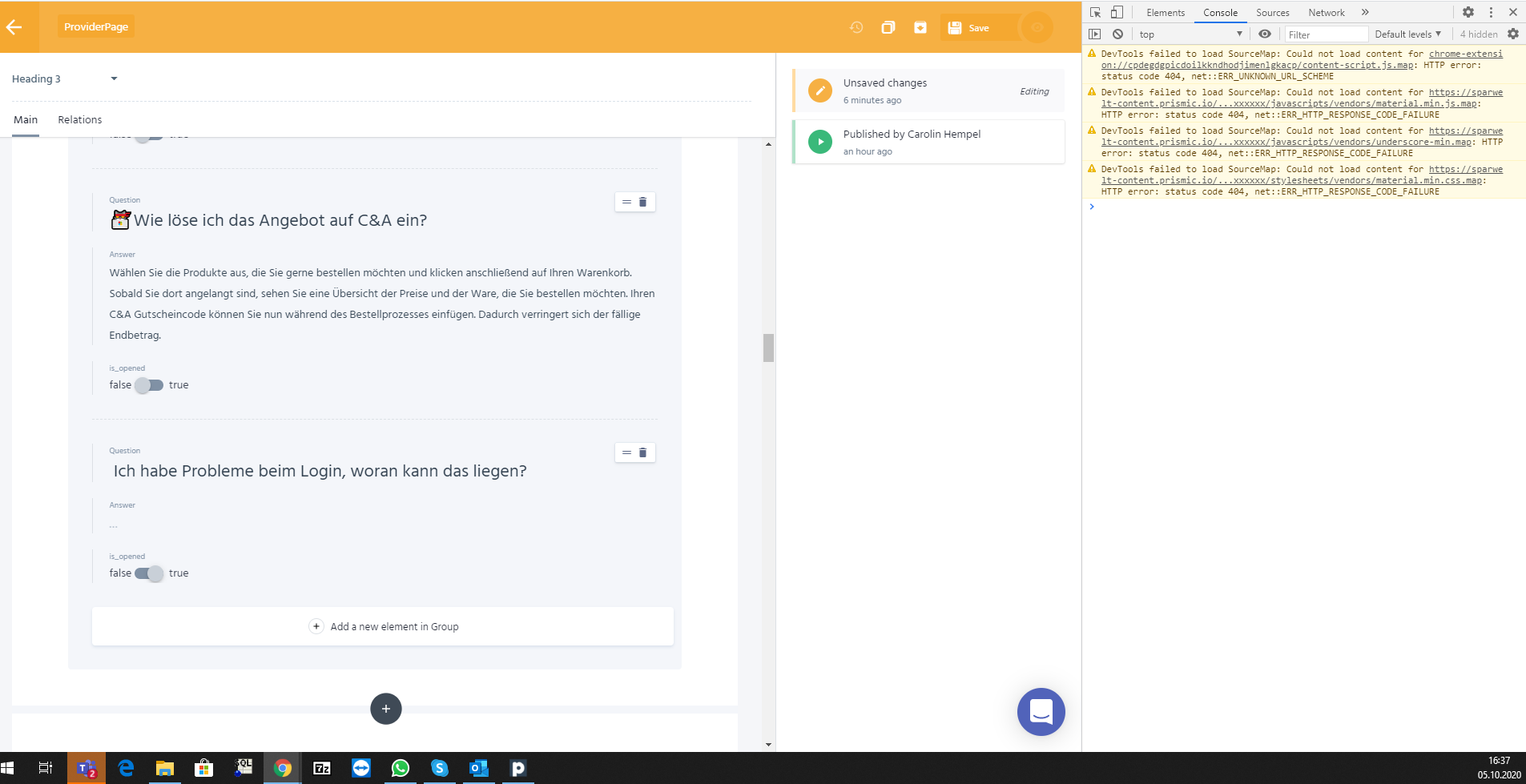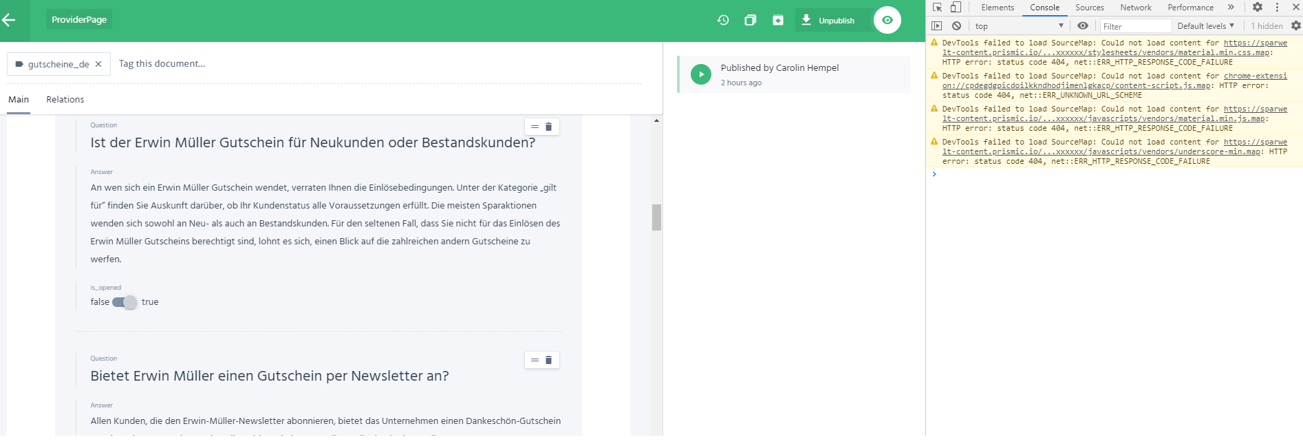 One ideas I had was maybe it’s when more than one person from our team accesses Prismic. Surely this should not be the case and it only affects the FAQs.