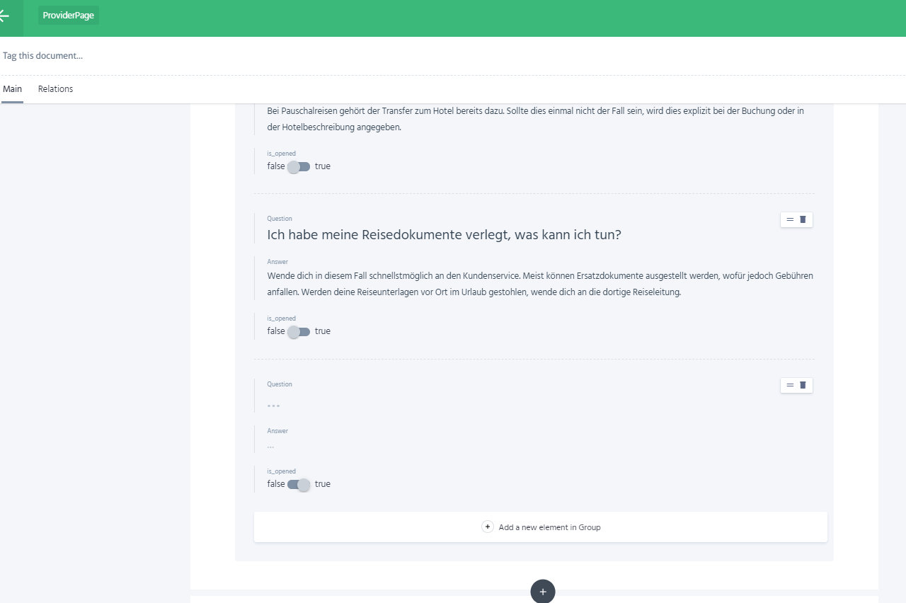 One of the questions is always being deleted out of the FAQs on prismic, after saving. Result- one empty FAQ modul, always the last question. This happens regulary, if not always; so no pattern is visible for us in order to eradiate this occurance.